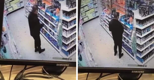 Отпив из одной упаковки, он выбрал другой лосьон и пошел с ним на кассу. Протестированный товар остался на полке.