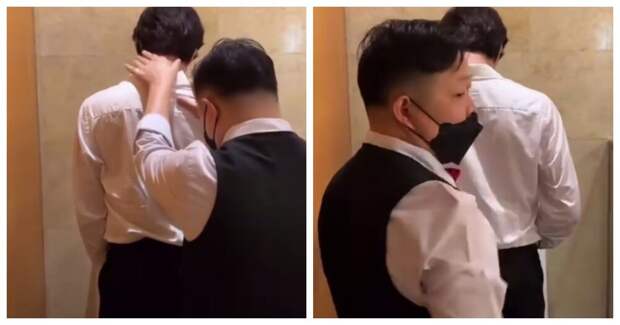 В мужских туалетах некоторых заведений в Таиланде работают массажисты. Они оказывают свои услыги во время того, как человек справляет нужду. Вот как это выглядит со стороны.