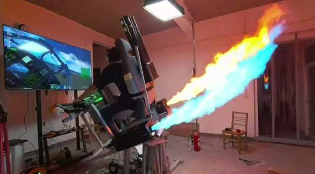 Китайский геймер собрал вместе с приятелями в гараже игровую систему для любителей воздушных сражений. Домашняя "кабина истребителя" включает турбины, пусковую установку и авиационный пулемёт. Это не первая его работа. Ранее он строил танк и не только.