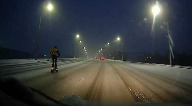 Видео из Иваново. Курьер-самоубийца на электросамокате по заснеженному шоссе обгоняет автомобили. Самое грустное в подобных историях то, что если такой курьер куда-то влетит, то крайнем будет водитель автомобиля. Разве это справедливо?