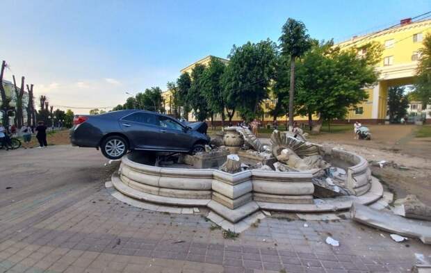 В подмосковном Ступине автомобиль "Тойота Камри" пролетел на высокой скорости по пешеходной зоне возле местной администрации и врезался в фонтан. Чудом обошлось без пострадавших. Полиция проводит проверку, предварительно, водитель не справился с управлением.Видео самой аварии пока нет, только последствия.