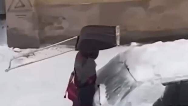 Очевидец запечатлел коммунальщика, который защищал припаркованные машины. Вооружившись лопатой, мужчина спасал припаркованные машины от льда, который скидывали с крыши дома его коллеги.