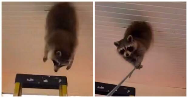«Всё потому, что кто-то слишком много ест!». Крылатая фраза из мультфильма о Винни-Пухе как нельзя лучше описывает ситуацию, в которой оказался енот. Однако вместо норы Кролика енот застрял в ... "потолке".