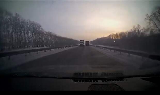 В Кемеровской области водитель фуры решил устроить обгон, но просчитался и чуть не погубил пассажиров легковушки. Осторожно, много мата.