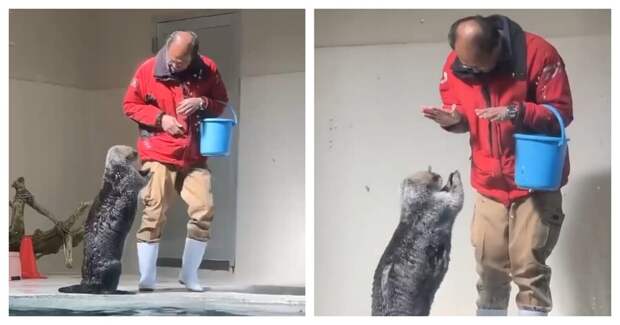 В сети прославилась выдра, которая выпрашивала рыбку у работника зоопарка. Её усилия были не напрасны.