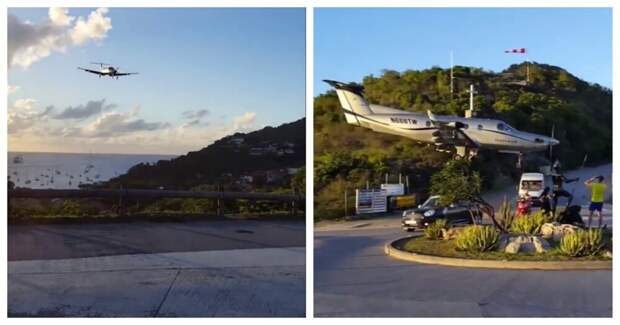 Перед вами посадка самолетов в аэропорту Густава III на карибском острове Сен-Бартелеми. Посадочная полоса расположена так, что самолеты пролетают в нескольких метрах от дороги