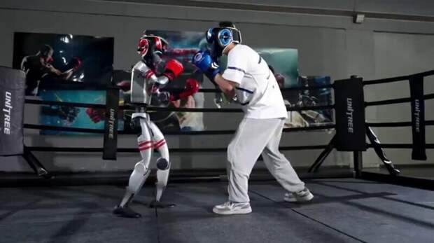 Китайская компания показала небольшую тренировку своего робота. Сперва он бился с человеком, а затем с другим роботом.