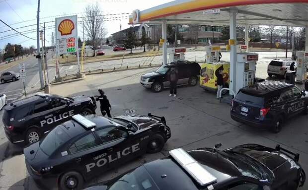 Курьёзный случай произошёл на АЗС в США. Артистизм на высоте. Как отметили в полиции - с женщиной-офицером всё будет в порядке. Инкстер, штат Мичиган.