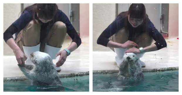 Работа мечты для многих любителей животных - смотритель морских выдр (каланов). Среди обязанностей — ласковые поглаживания животных по голове.