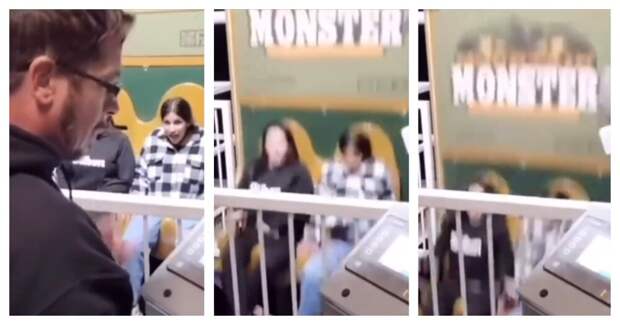 Работник парка развлечений подшучивает над посетителями аттракциона. Перед запуском мужчина делает вид, что произошла какая-то неполадка.