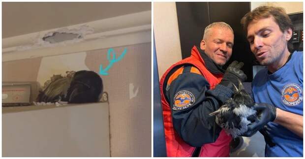 Очень целеустремлённая ворона заглянула в гости к жителям одного из районов Москвы. Птица проклевала себе путь на кухню через вентиляционное отверстие и застряла.