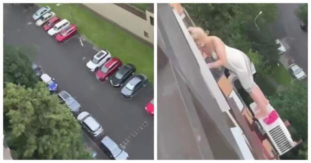 Жительница столицы устроила рискованную помывку окон, стоя на тумбе кондиционера, прикрепленного на фасаде жилого здания. Девушку снял на видео один из ее соседей по дому на улице Гарибальди.