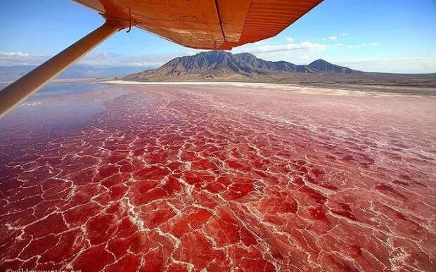 Солёная красная пустошь в Танзании - место размножения фламинго, находящихся под угрозой исчезновения.