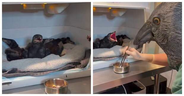 Посмотрите, как в некоторых приютах кормят осиротевших воронов. Подобная маска нужна для того, чтобы птенцы ворона не привыкали к людям и оставались дикими.