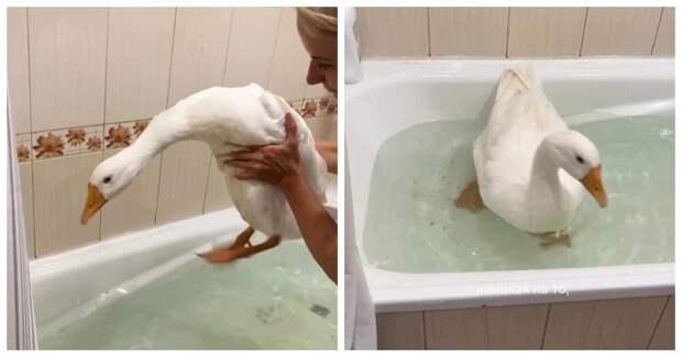 В последнее время россияне всё чаще заводят в квартирах гусей вместо привычных кошек и собак. Хозяева отмечают, что птицы отлично справляются с охраной жилья, «будят с утра лучше любого будильника» и создают «атмосферу деревни» в городской квартире. В видео девушка продемонстрировала, как проходят водные процедуры у её питомца.