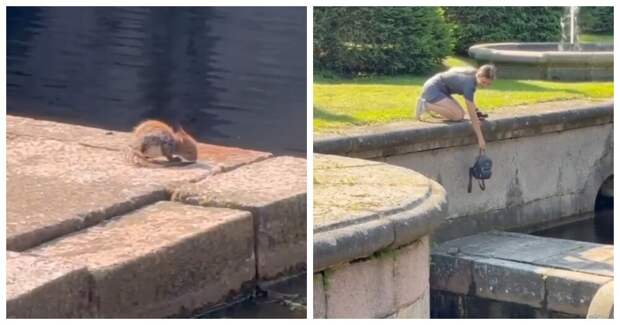 Первой на помощь пришла девушка — автор видео, за ней подключилась уборщица со шваброй и туристы. Совместными усилиями малыша вытащили из воды.
