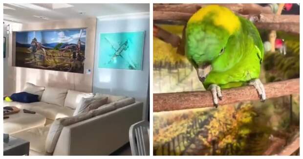 Попугай устроил утренний концерт в доме. На крики пернатого прибежал сонный хозяин, переживающий из-за возможных претензий со стороны соседей.