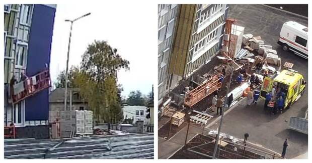 На строительной площадке многоквартирного дома в Уфе произошло ЧП. Люлька с рабочими упала из-за обрыва троса. Сверху на мужчин упал столб, за который этот же трос и крепился. Чудом обошлось без погибших.