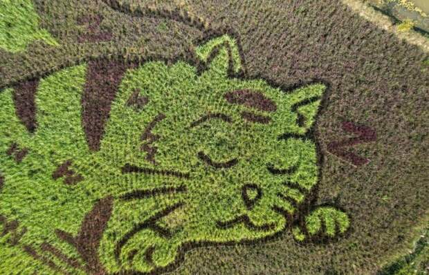 Фермер из Таиланда Таньяпонг Джайхам прославился в Сети благодаря милым изображениям котов, которые он рисует на рисовых полях в провинции Чианграй.