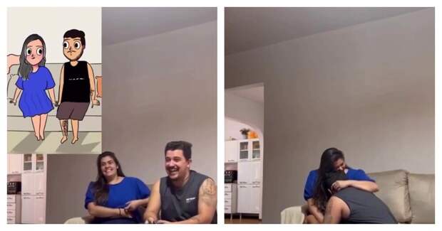 Женщина оригинальным образом сообщила своему мужу приятную новость. Супруг оценил сюрприз.