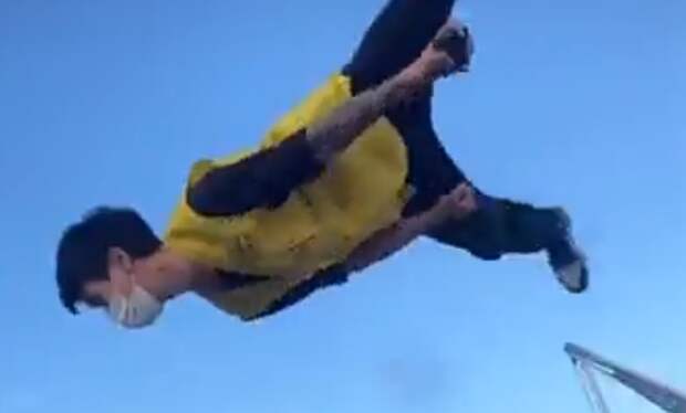 Работник парка аттракционов в Южной Корее удивил посетителей и пользователей сети своим поступком. Молодой человек выполнил трюк во время работы аттракциона.