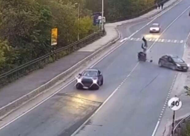 Авария в Чусовом Пермского края. В объектив камеры уличного наблюдения попал момент жесткого столкновения автомобиля с мотоциклом. Мотоциклист жив и сейчас находится в больнице.