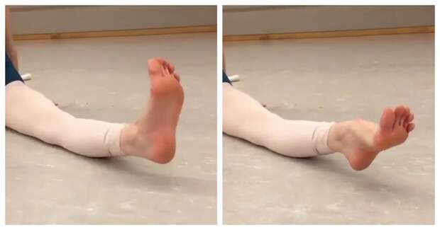 Балерина продемонстрировала гибкость одной из своих ног. Делайте так каждый день и ноги болеть не будут...