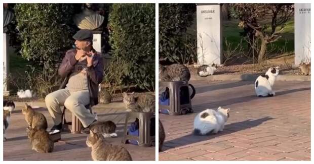 В столице Турции, где много уличных кошек, уличного музыканта засняли во время выступления, которое, по сути, слушали только пушистые жители города.