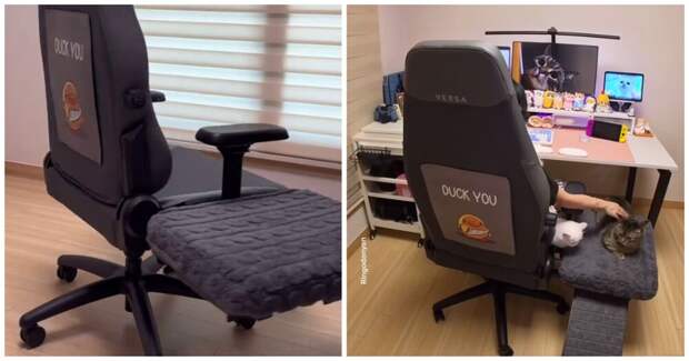 Компьютерное кресло, которое определенно оценит большинство котов. Оно оснащено мягкой подставкой для питомцев.