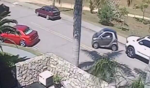 В Бразилии женщина на миниатюрном автомобиле Smart попыталась припарковаться неподалеку от здания. Однако что-то пошло не так.
