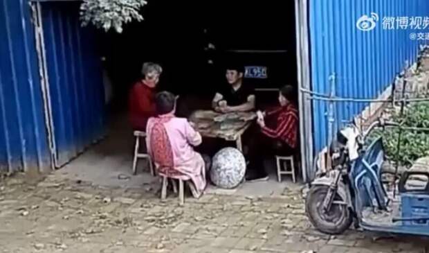 Камера наблюдения запечатлела неожиданное нападение на группу женщин, решивших поиграть в карты.