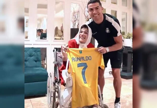 Португальский форвард находился в Иране в составе саудовской команды «Аль-Наср», которая проводила матч азиатской Лиги чемпионов с тегеранским «Переполисом». После игры Роналду встретился с прикованной к коляске поклонницей Фатимой, которая ногой нарисовала портрет любимого футболиста.