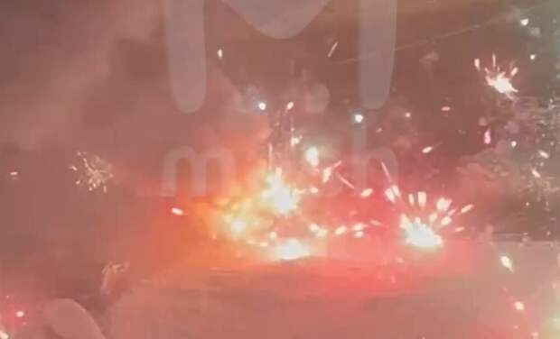 Новогоднее ДТП с участием машины, набитой фейерверками, на Волоколамском шоссе в подмосковном Красногорске. Автомобиль загорелся после столкновения. Потом начался салют.