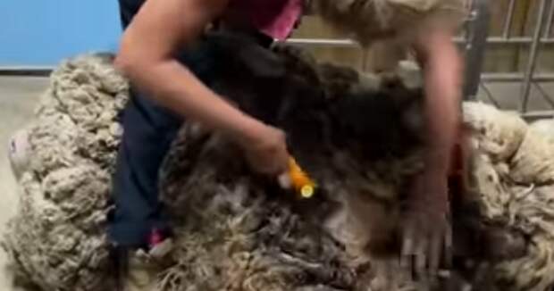 С потерявшейся овцы было срезано почти 40 килограммов шерсти. Животное обросло ей за шесть лет скитаний.
