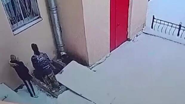 Проделки школьников у здания администрации Выборгского района Петербурга запечатлела камера видеонаблюдения.