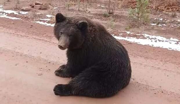 Мужчина уговаривает медведя отправиться в спячку. Однако спячка в ближайшие планы мишки похоже не входит.