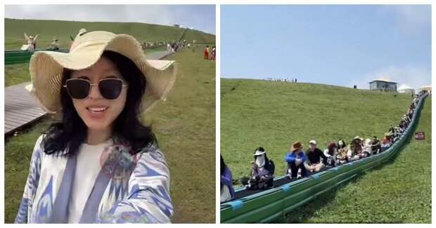 Сначала она подумала, что это аттракцион, но это был сидячий эскалатор. Чтобы подняться пешком по дощатому настилу, понадобилось бы две-три минуты, однако большинство туристов предпочитают подниматься сидя.