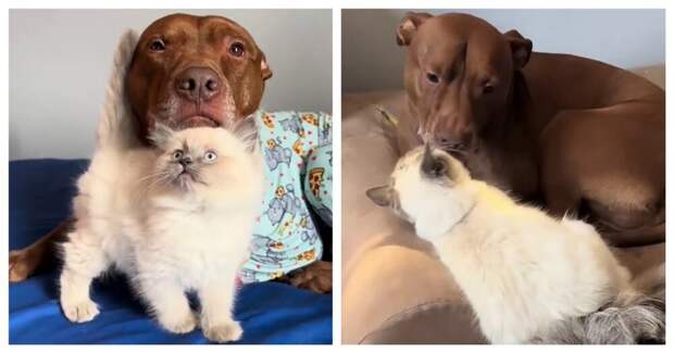 Кто сказал, что кошки и собаки — заклятые враги? Они могут быть хорошими друзьями, особенно, если выросли вместе.