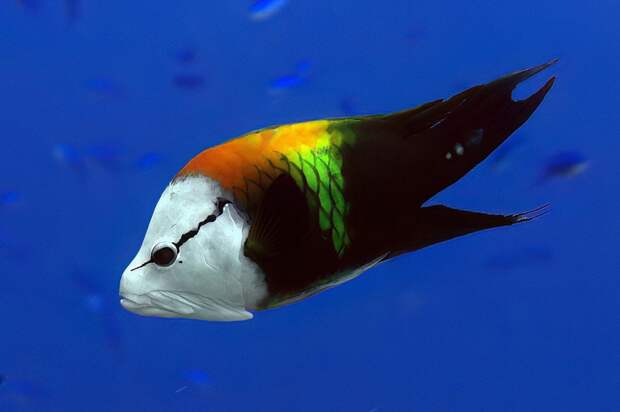 Большеротый губан - рыба с действительно уникальным ротовым аппаратом. При ловле добычи рыба может вытягивать челюсти вперёд на целых 65% от длины головы.