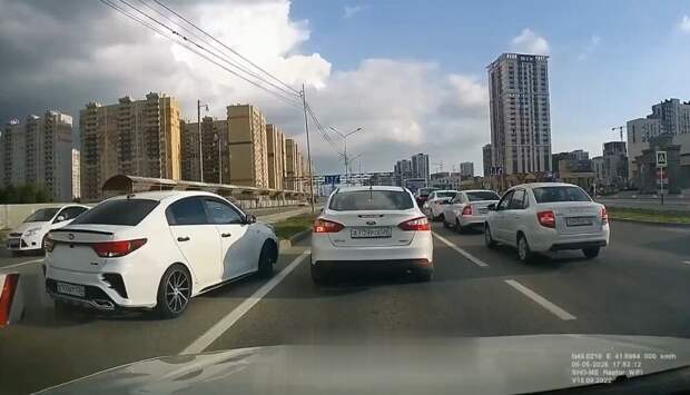 В Ставрополе водитель "Киа" сперва едва ушел от столкновения с автомобилем, в котором установлен видеорегистратор, а затем зачем-то ударил другую машину.