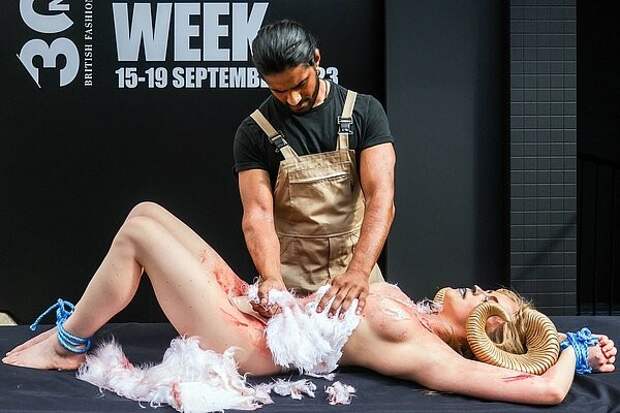 Неделя моды в Лондоне была бы скучной без творчества экоктивистов. В знак протеста зоозащитники решили продемонстрировать людям, как страдают животные в процессе изготовления кашемировых изделий.