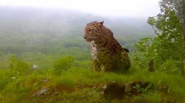 В Национальном парке "Земля леопарда" в Приморском крае в объектив фотоловушки попало нетипичное поведение дальневосточного леопарда. Хищник не испугался дождя и метил территорию.