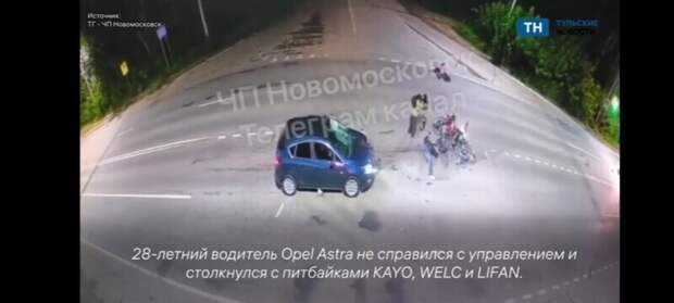 Водитель иномарки снес сразу трёх питбайкеров на трассе в Тульской области.