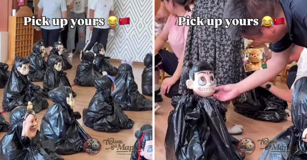 Такой тест проводят в китайских детских садах. Его называют окончательным тестом на естественную связь. На ребенка надевают мусорный пакет с отверстием для лица, маску и рассаживают детей на полу, а родители, используя лишь интуицию, пытаются найти своего.