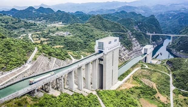 Судоподъемник «Гупитань», расположенный в китайской провинции Гуйчжоу, — самый большой в мире. Он способен поднимать суда водоизмещением до 500 тонн на высоту 199 м. Это сооружение — впечатляющий инженерный подвиг.