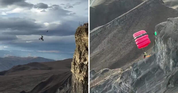 Трюк был совершен в селе Кули Кулинского района. Цибулько на мотоцикле разогнался на трапе, установленном на отвесной скале, и прыгнул в пропасть. После нескольких секунд свободного падения он отпрыгнул от мотоцикла. У экстремала и байка одновременно открылись парашюты. Еще десятки секунд Николай парил над скалами.
