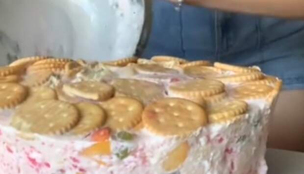 Девушка решила похвастаться перед подписчиками недавно сделанным тортом. Однако героиня ролика недодержала кондитерское изделие в холодильнике и оно не застыло до конца.