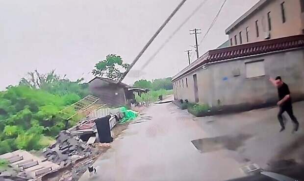 Житель китайской глубинки при помощи лопаты попытался догнать своего удирающего питомца что попало в объектив видеорегистратора, установленного в автомобиле случайного очевидца инцидента.