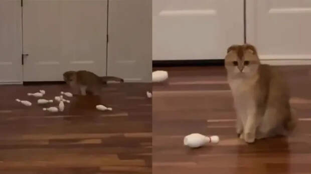 Кот погнался за лазерной точкой и вскоре осознал, что его использовали самым бесцеремонным образом. Пушистый питомец стал участником спортивного эксперимента хозяина.