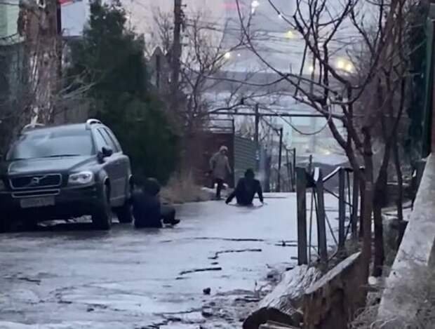 Ученики не могли спокойно идти по улице, а автобусы буксовали на льду.